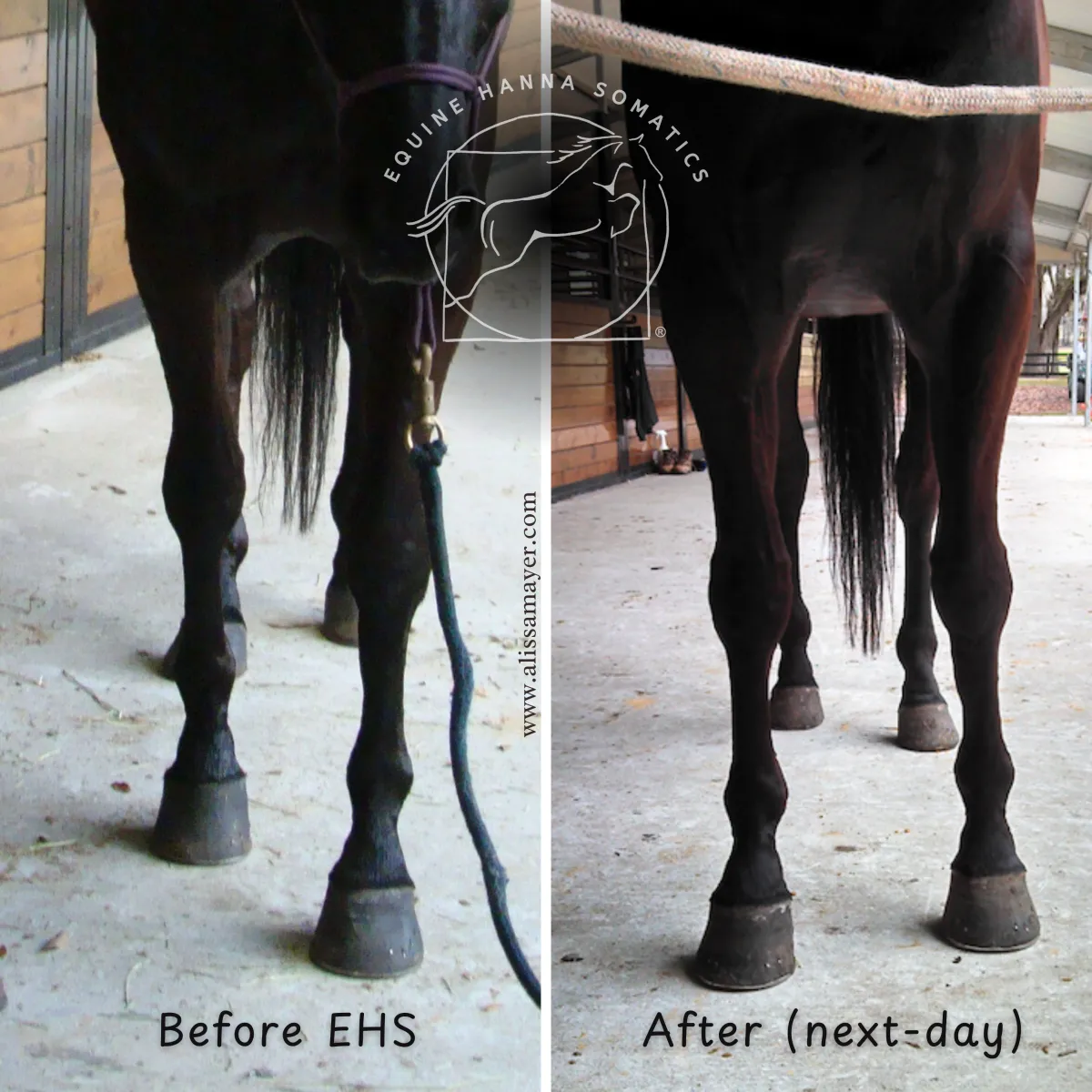 Certified Equine Hanna Somatics® Educators (C-EHSEs) have completed extensive training with Eleanor Criswell Ed.D and/or Alissa Mayer BSc(Equine) C-EHSE at the Novato Institute from 2006-2024, or with Alissa Mayer and Ryan Moschell LMT CHSE from 2024-present.